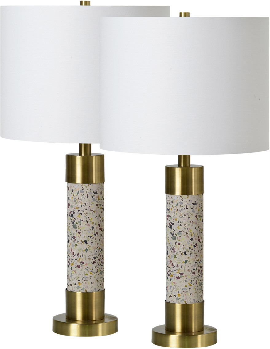 Le charme européen des mouchetures de terrazzo prend une tournure modernisée dans cette conception. Cette paire de lampes de table projette une lueur de mur en mur à travers la lumière et le style.Read More