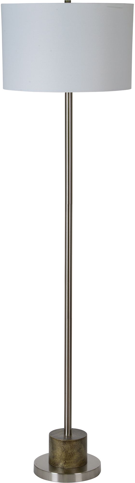 La lampe Stockwell présente un style de lampadaire traditionnel en fer et un abat-jour en tissu en forme de tambour. La base et la tige de la lampe sont finies en bronze antique rustique. L'abat-jour blanc cassé est fait en coton.Read More