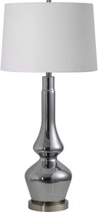 Cette lampe de table illumine le salon ou la chambre d'une énergie féérique. Son élégance radiante lui permet d'attirer tous les regards. Composée de verre teinté gris foncé chrome, avec des détails en fer plaqué de nickel satiné et un abat-jour en lin blanc cassé, sa palette est fraîche et apaisante.Read More